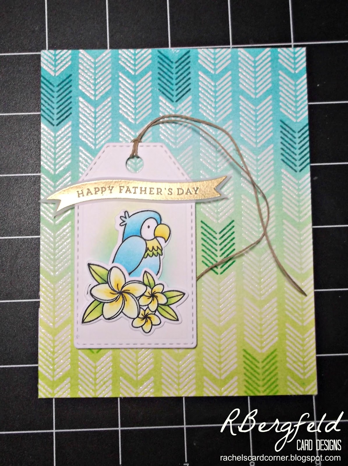 I chose the middle row for my card - Arrows, Jute/Natural Twine, and Tag. I also decided to make this into a Father's Day card because the images I chose are perfect for my tropics-loving dad!